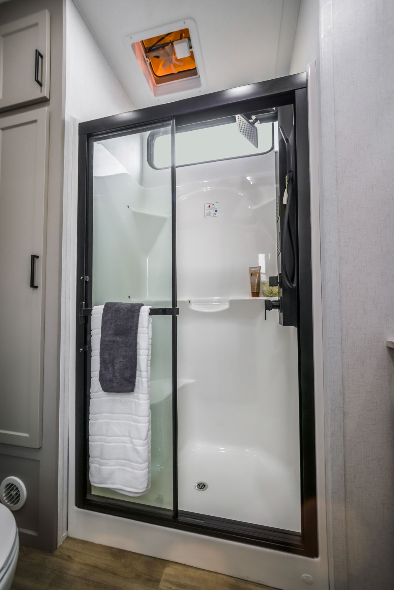 After a long day outdoors on the beach, around the campfire, or maybe a hard day of chores, you are ready to wash the day off in your Residential One Piece Fiberglass Shower with luxurious soft control faucets! Such a relaxing experience that you may not want to get out!
